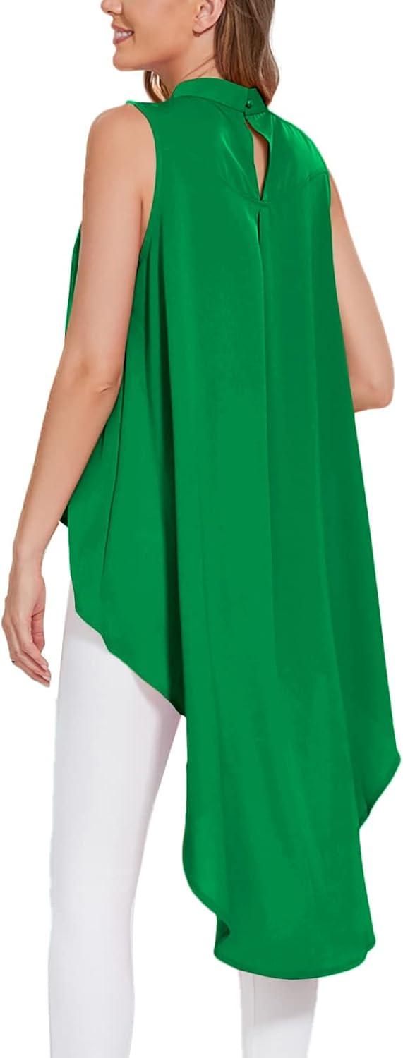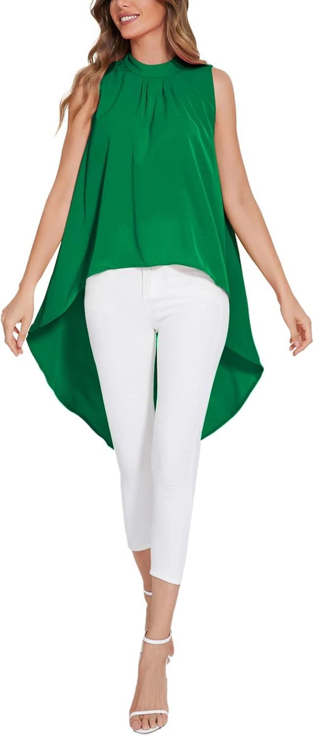 LYANER Women’s Asymmetrical High Low Sleeveless Mock Neck Flowy Blouse Tops(Green)