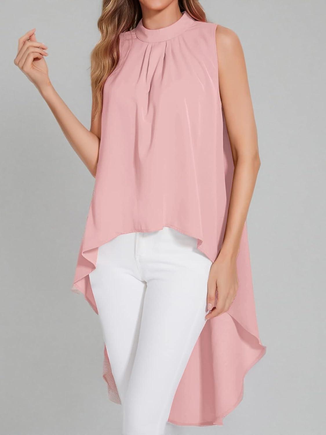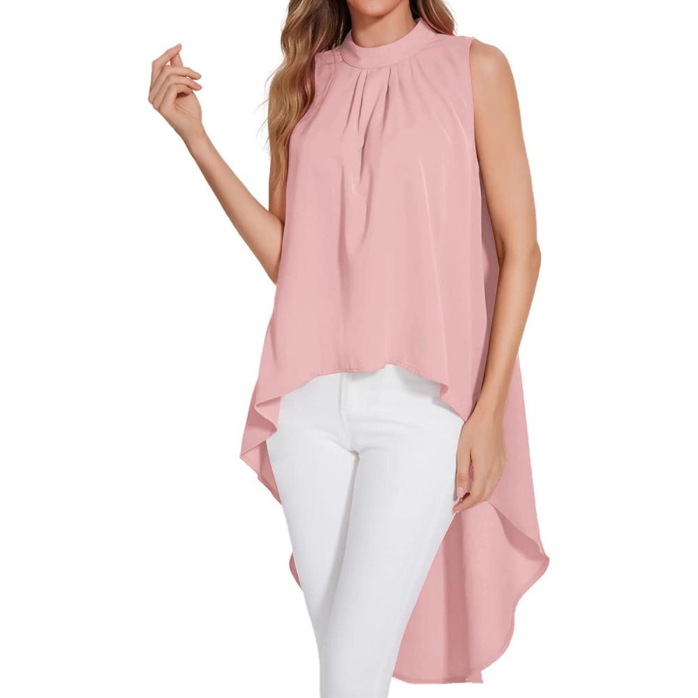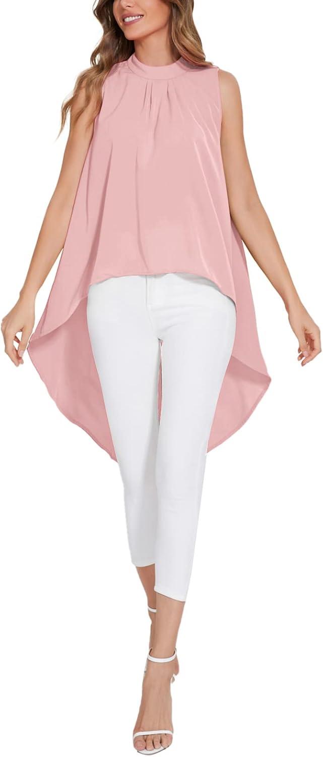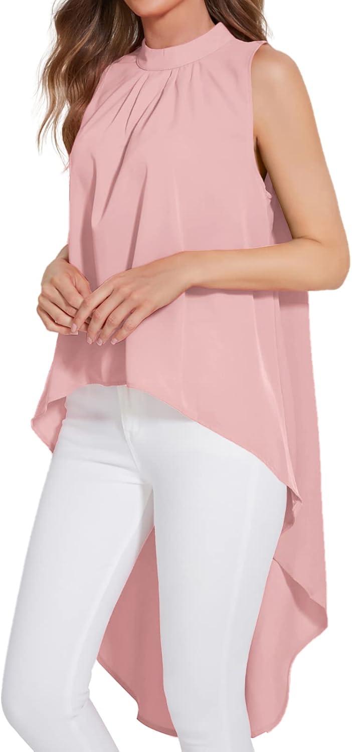 LYANER Women’s Asymmetrical High Low Sleeveless Mock Neck Flowy Blouse Tops(Pink)