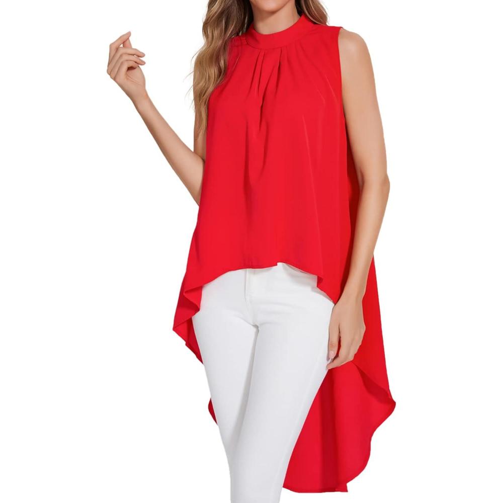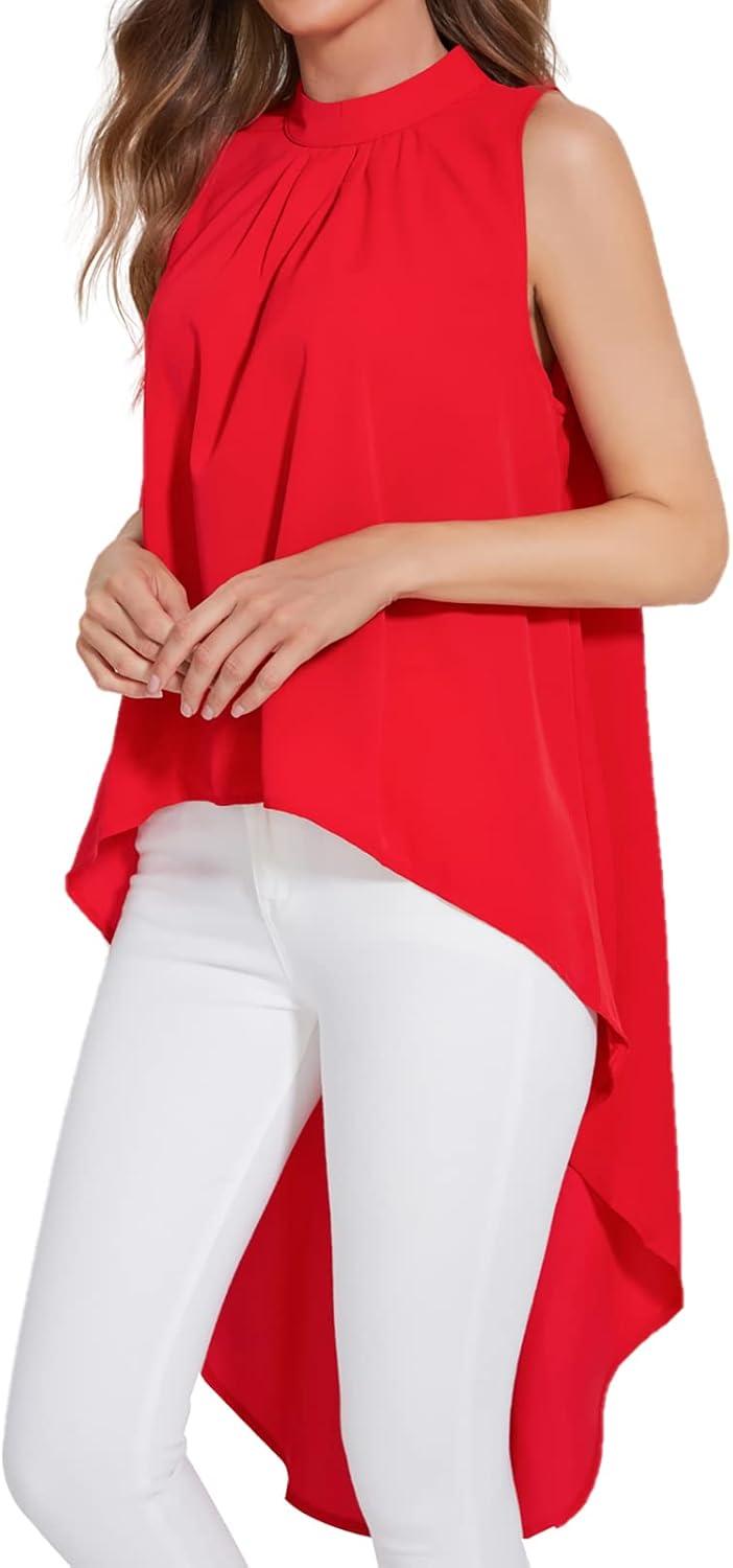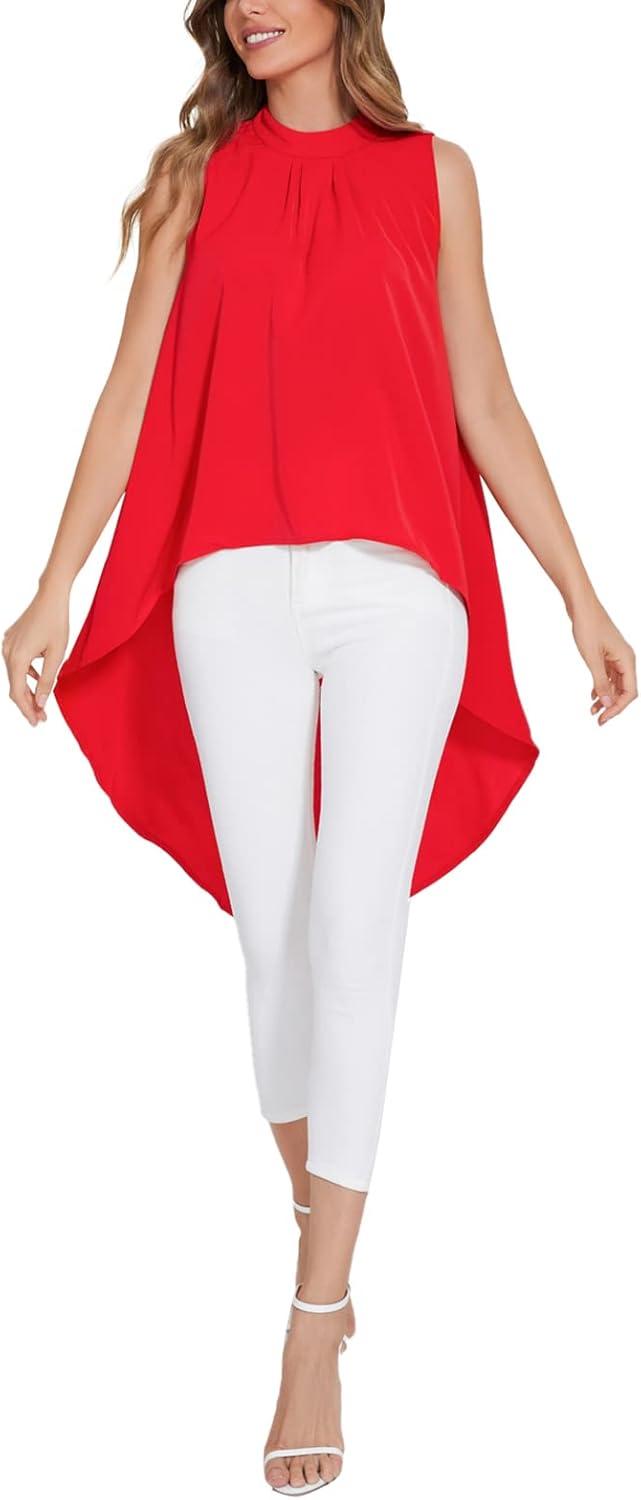LYANER Women’s Asymmetrical High Low Sleeveless Mock Neck Flowy Blouse Tops(Red)