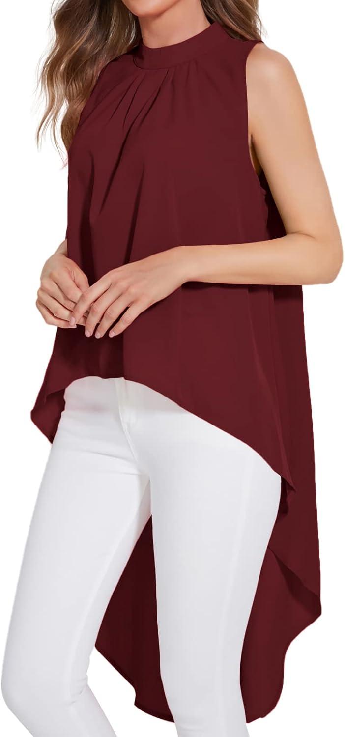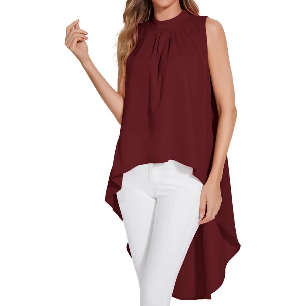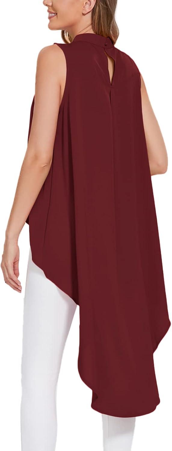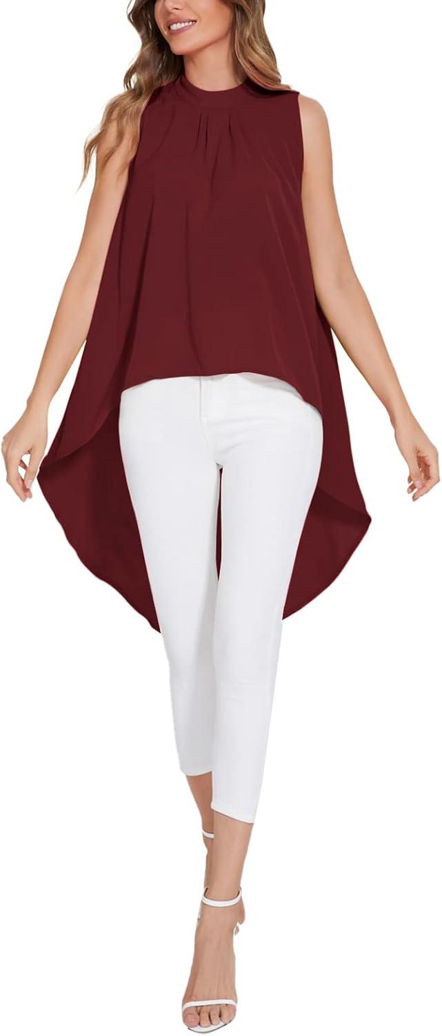 LYANER Women’s Asymmetrical High Low Sleeveless Mock Neck Flowy Blouse Tops(Wine Red)